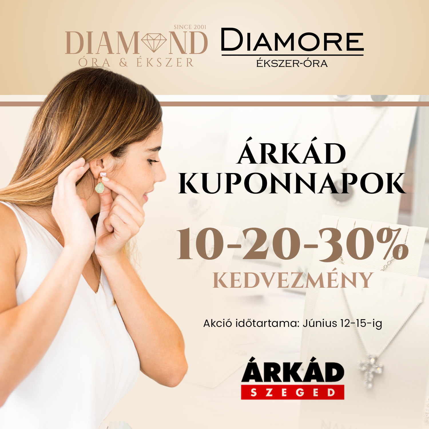 Ragyogj a szegedi nyárban! 20-30% kedvezményt ad a Diamond óra és ékszeraz ÁRKÁD Szeged kuponnapok ideje alatt